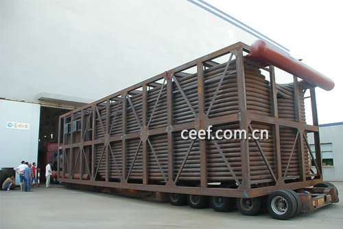 2016-08-10 随着我国对环保节能的要求改变,带动了超大型煤炉市志供求。在此形势下,我公司依托多年研发导热油煤炉的优势,接连签下了多份2000万大卡左右的导热炉合同。 近日,我公司和杭州某签署的两台2000万大卡导热油煤炉主体部分已制作完成,这两台设备炉体15.5米长,5.4米宽,4.35米高,都达到运输了极限。在多方的精心操作下,已经安全运抵客户现场。 该项目的顺利进行,向各方展示了我公司的综合实力,利完工充分展现了企业在超大超重设备的设计、制造能力,有能力完成更高难度、更高标准的大型项目。